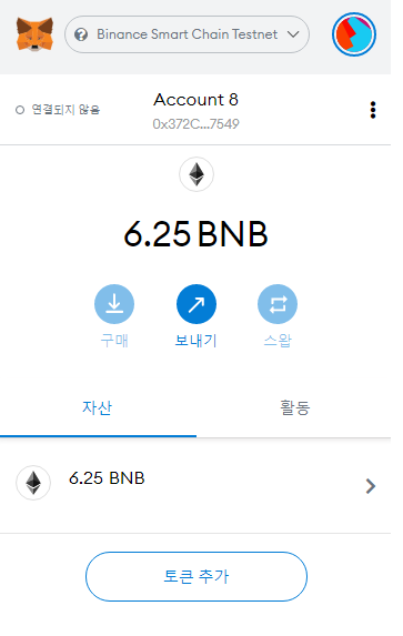 메타마스크 지갑 BSC 테스트넷을 연결합니다.