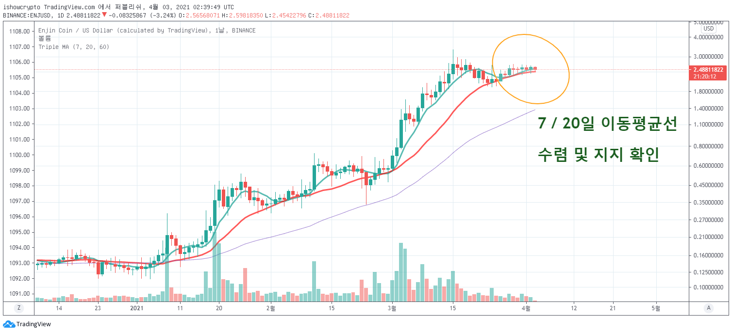 그리고 엔진코인 차트와 같이 7일 이평선이