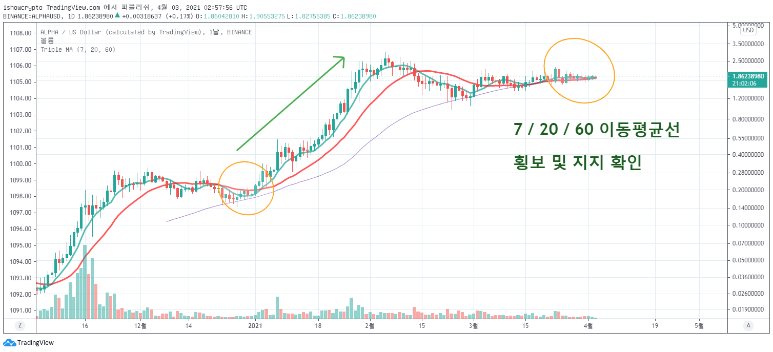 2) 7 / 20 / 60 이평선 지지한다면 금상첨화