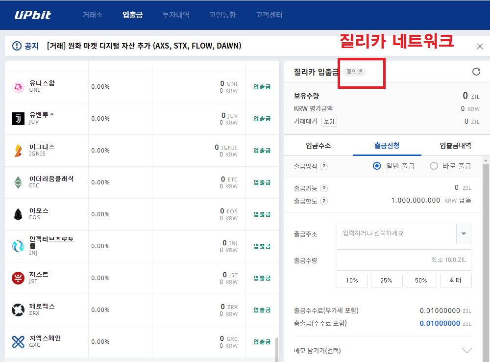 업비트에서 ZIL 코인을 출금하고 싶다면