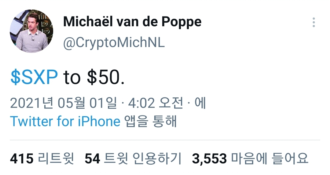 암호화폐 차트 분석가로 유명한 크립토 마이클은