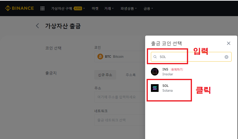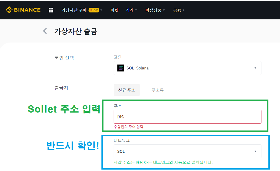 그럼 바이낸스 거래소에서 sollet 지갑으로