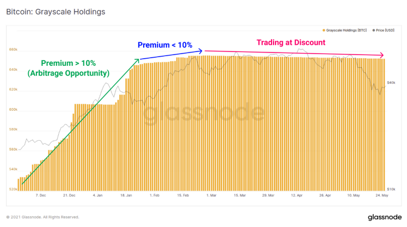 5월19일 이후 GBTC 프리미엄은 -3%까지
