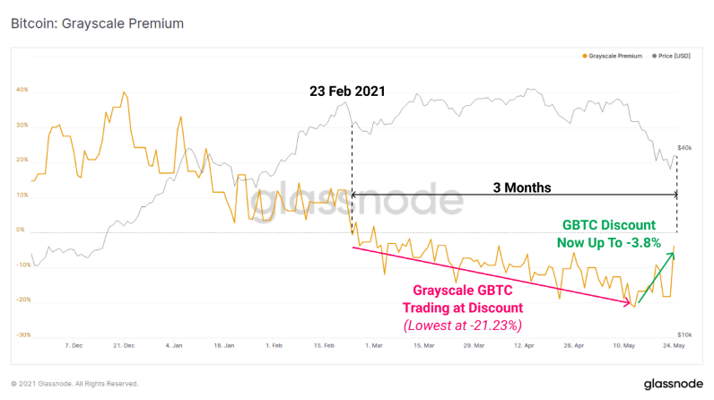 GBTC 프리미엄이 반등하기 시작한 가격대는