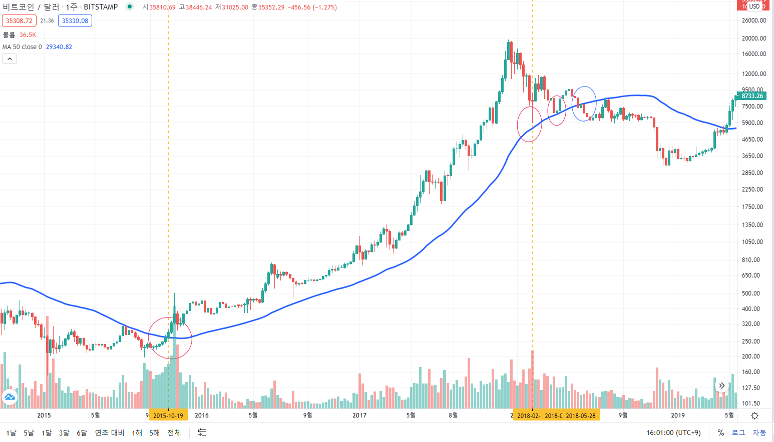 50주 이동평균선 가격대 움직임을 잘 살핀 후