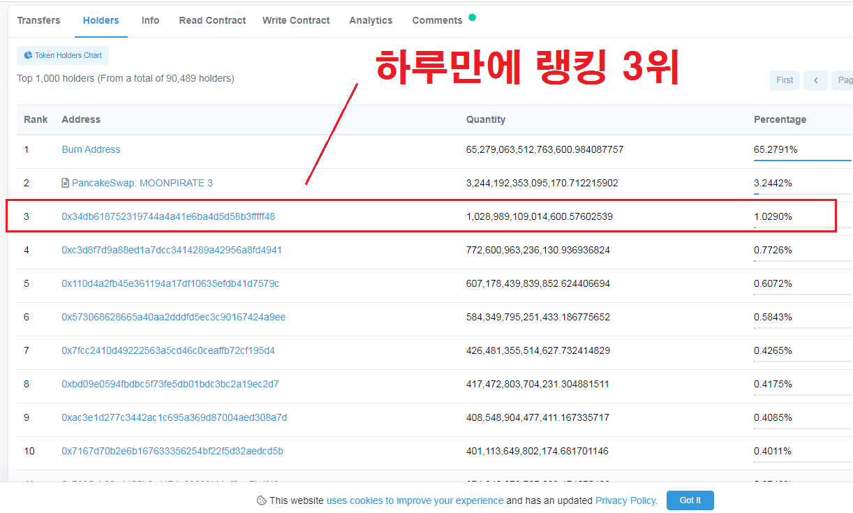 3위가 실질적으로 홀더 주소 중 1위라