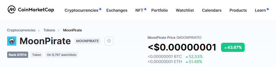 따르면 Moonpirate 코인은 하루만에