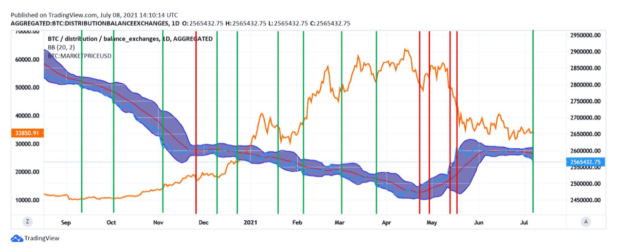 BTC의 거래소 흐름을 조사할 때
