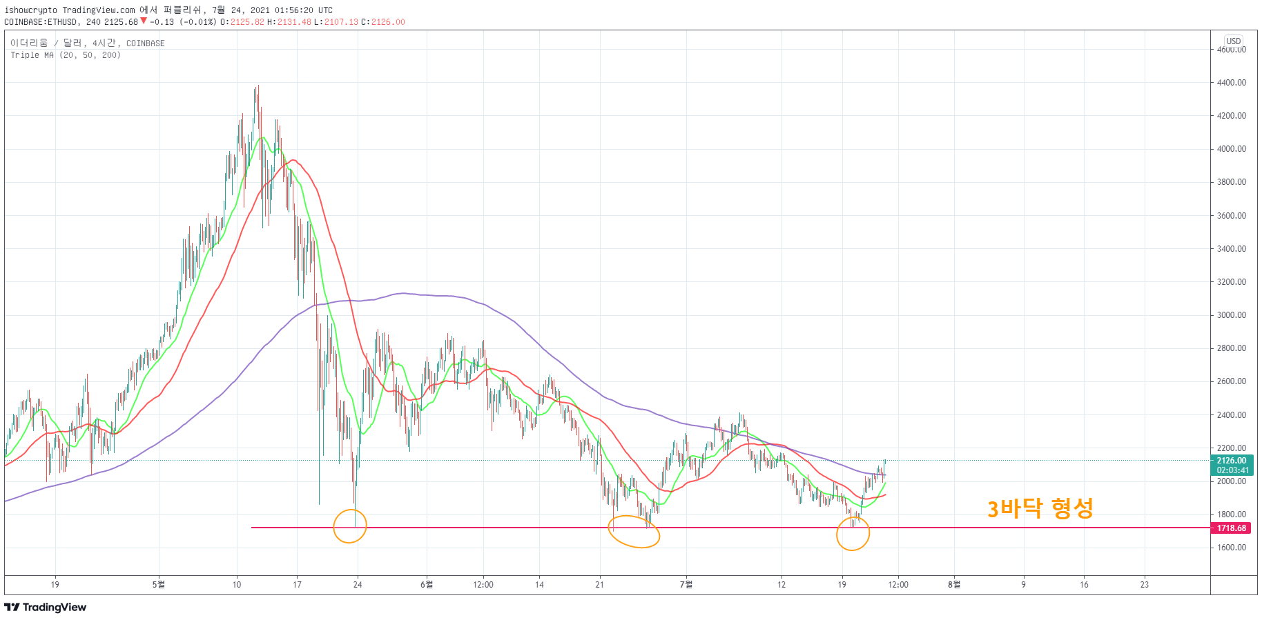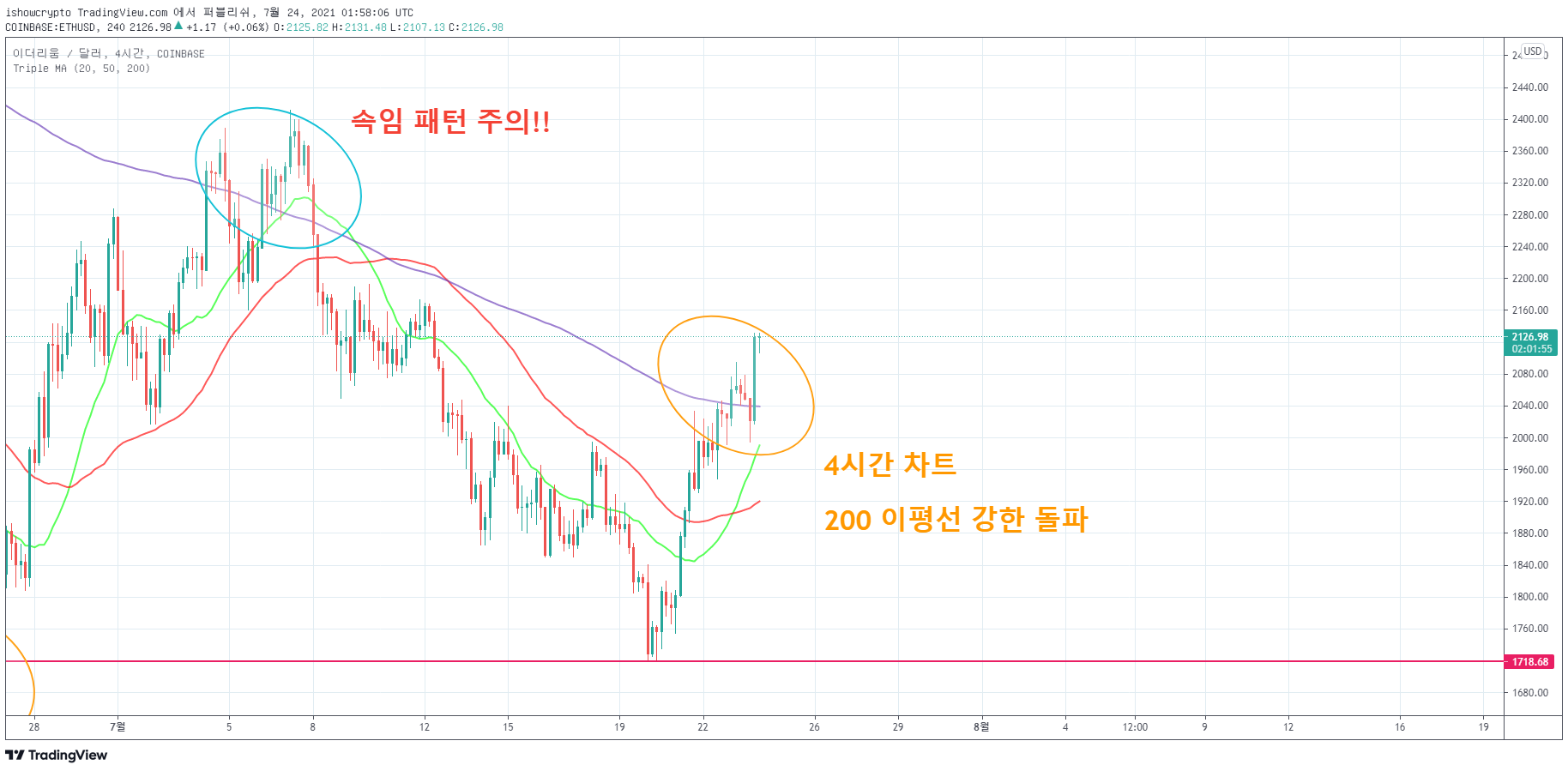 2021년3월 ETH은 4시간 200 이평선 돌파 후