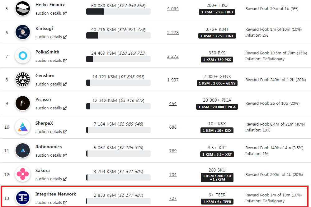 쿠사마 파라체인 옥션에서 아직 13위에