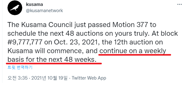 또한 48주간 지속적으로 슬롯 경매를 하게되면 1년 후 KSM코인 락업 해제에 따른 KSM코인 덤핑 확률을 줄일 수 있다는 장점도 있습니다.