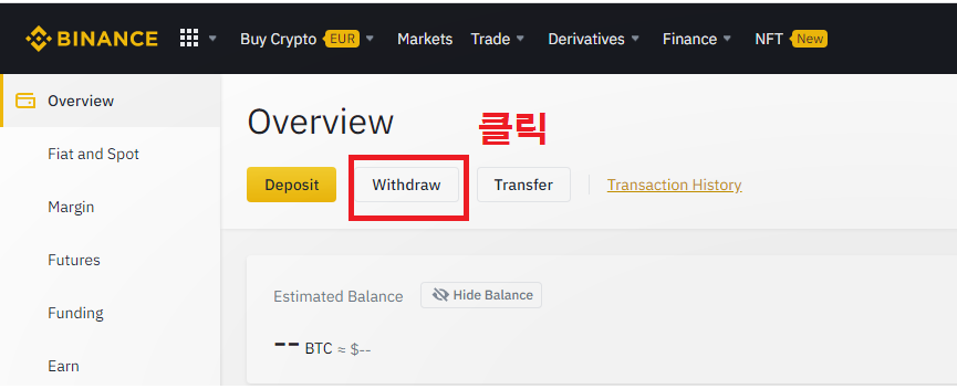 2) 바이낸스 거래소로 이동해서 withdraw(출금)을 클릭합니다.