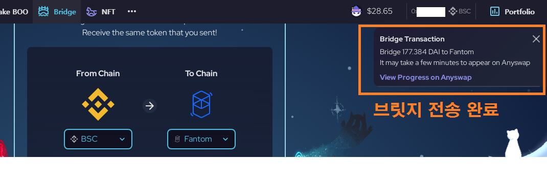 이제 BSC 네트워크 DAI 토큰을 Fantom 네트워크로 이동해보겠습니다.