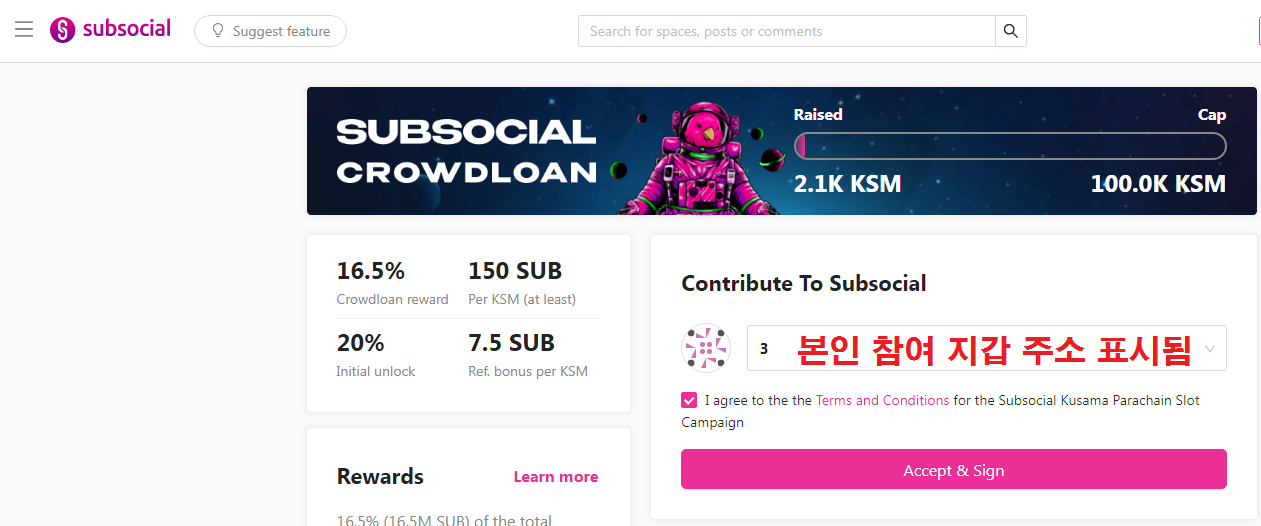 폴카닷 및 쿠사마 크라우드론이 성공적으로 진행중입니다. 오늘은 제가 참여한 쿠사마 파라체인 크라우드론 Subsocial 플랫폼 및 참여 방법을 안내드립니다.