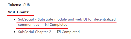 눈에 띄는 VC는 보이지 않습니다. 하지만 서브소셜은 W3F GRANT(일종의 품질보증 KS 마크)를 받은만큼 폴카닷 재단으로부터 기술적으로 인정받았고, 폴카닷 생태계에서 WEB3 분야의 중요한 역할을 담당할 것으로 기대합니다.