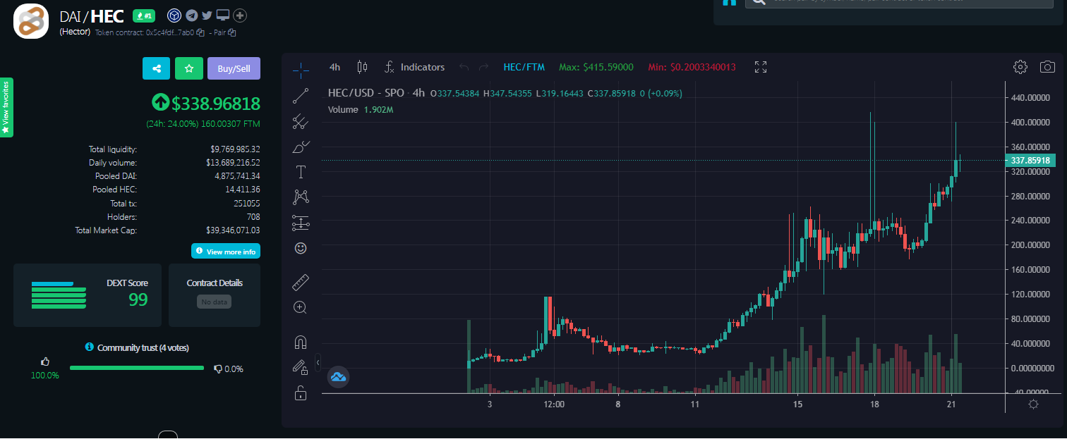 OHM 포크 코인들이 뜨겁습니다. 이전에 소개드린 헥터 다오의 경우, 40달러 선에서 소개 드렸는데 벌써 340달러까지 상승했습니다.
