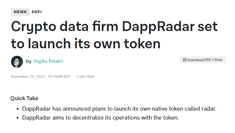 해외 리서치를 하다가 디앱레이다(DappRadar) 에서 조만간 거버넌스 토큰을 발행한다는 소식을 접했습니다. 그래서 거버넌스 Radar 토큰 에어드랍 방법을 소개합니다.