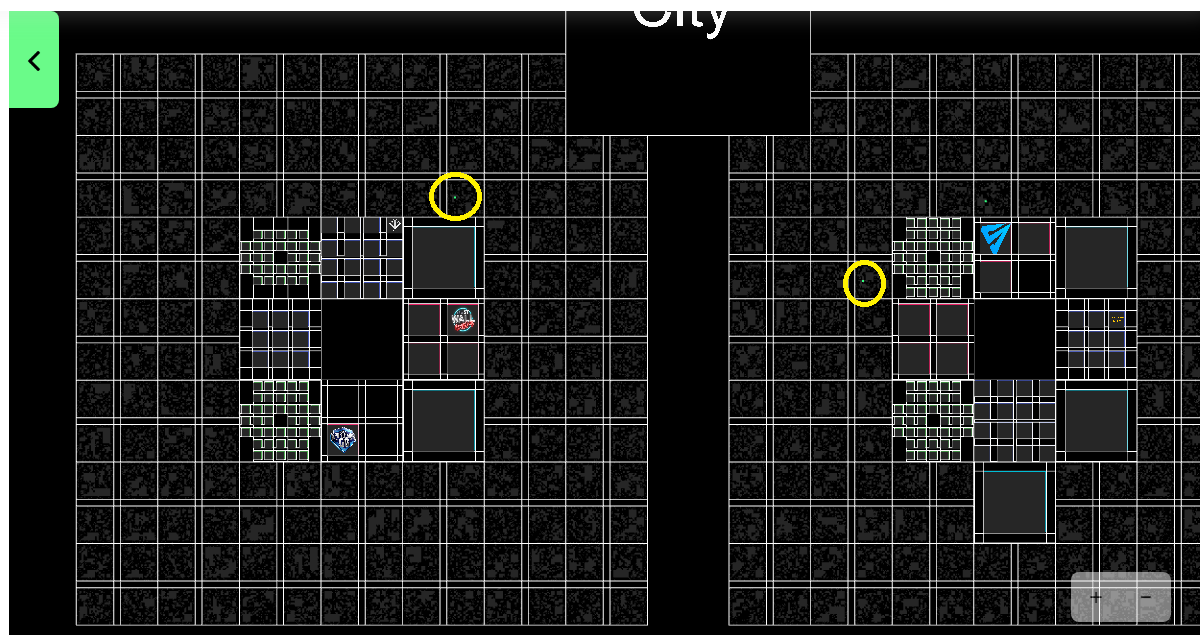 저는 Forest 구역(남서쪽)에 1필지, 이스트 구역(남동쪽)에 1필지를 구매했습니다. 위 지도에서 보시면 연두색으로 표시된 점(노란색 동그라미)이 제 LAND 입니다.