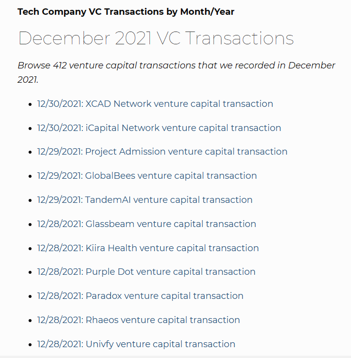 그러던 중 이번에 발견한 사이트는 이런 문제를 해결할 수 있도록 VC 투자 현황을 월별/연도별로 요약해 놓았습니다.