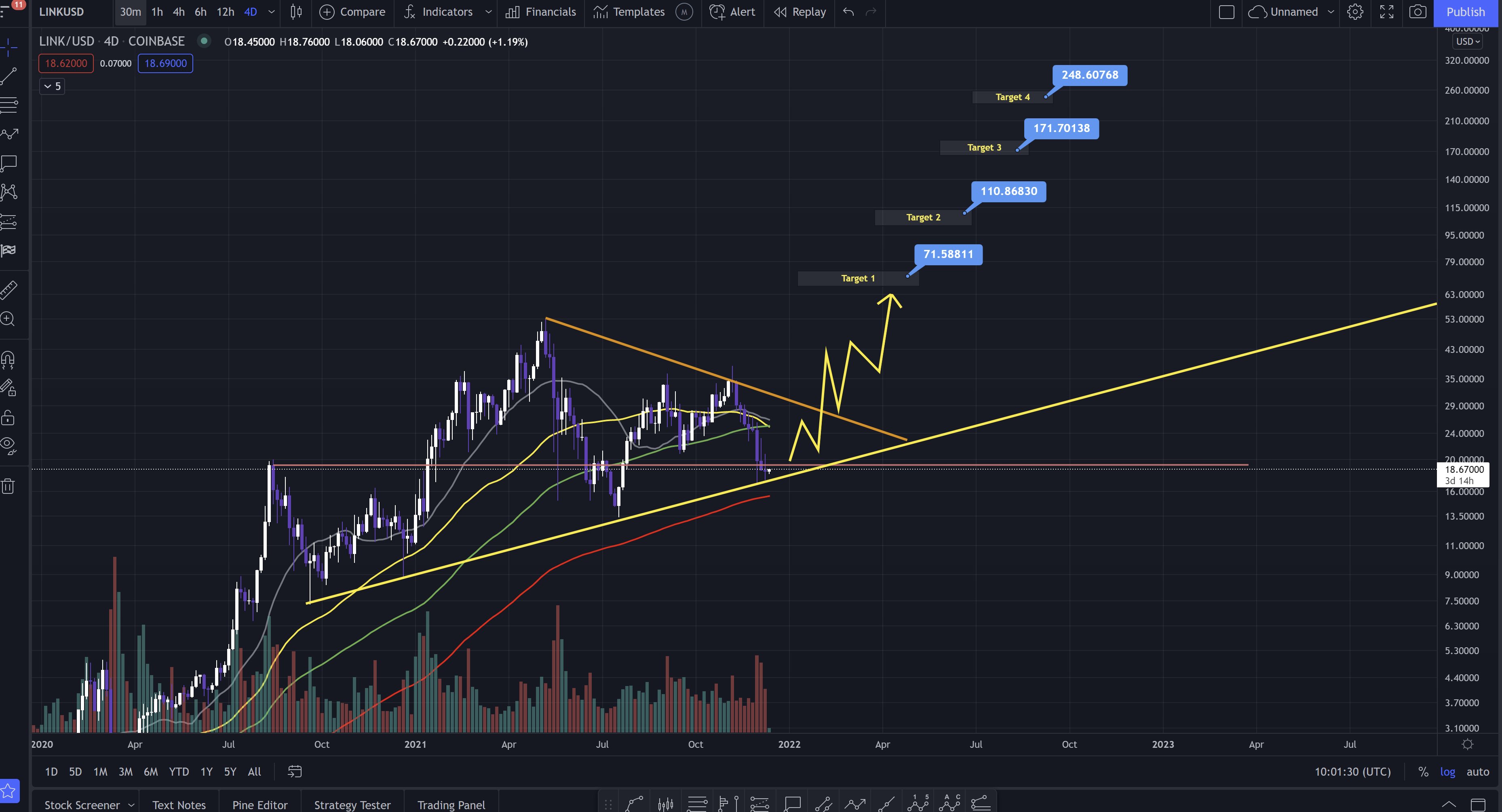 또다른 분석가 crypto eddie에 따르면 체인링크는 이미 저점을 찍었으며, 올해 1차 목표가 71$, 2차 110$, 3차 171$, 최종 240$까지 상승 파동을 그릴 것으로 전망했습니다.