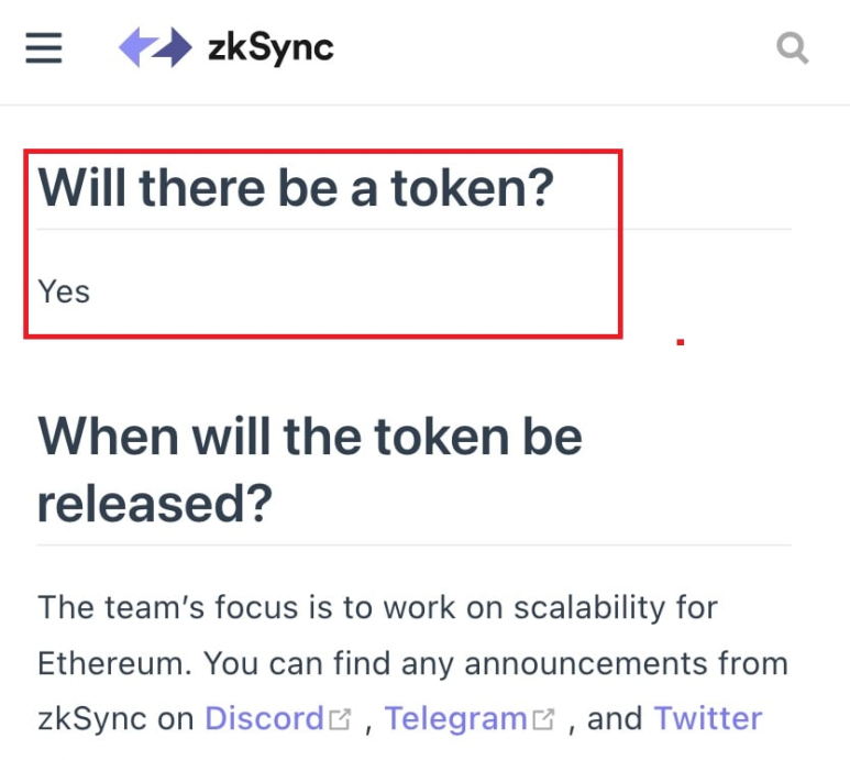 zksync 문서를 살펴보면 예전에 "토큰을 발행할 예정입니까" 라는 FAQ에 "YES" 라고 답한 것을 알 수 있습니다. 하지만 이 FAQ는 지금은 사라졌습니다. 따라서 이런 내용을 살펴볼 때 매우 높은 확률로 ZKsync 거버넌스 토큰을 발행할 확률이 높습니다.