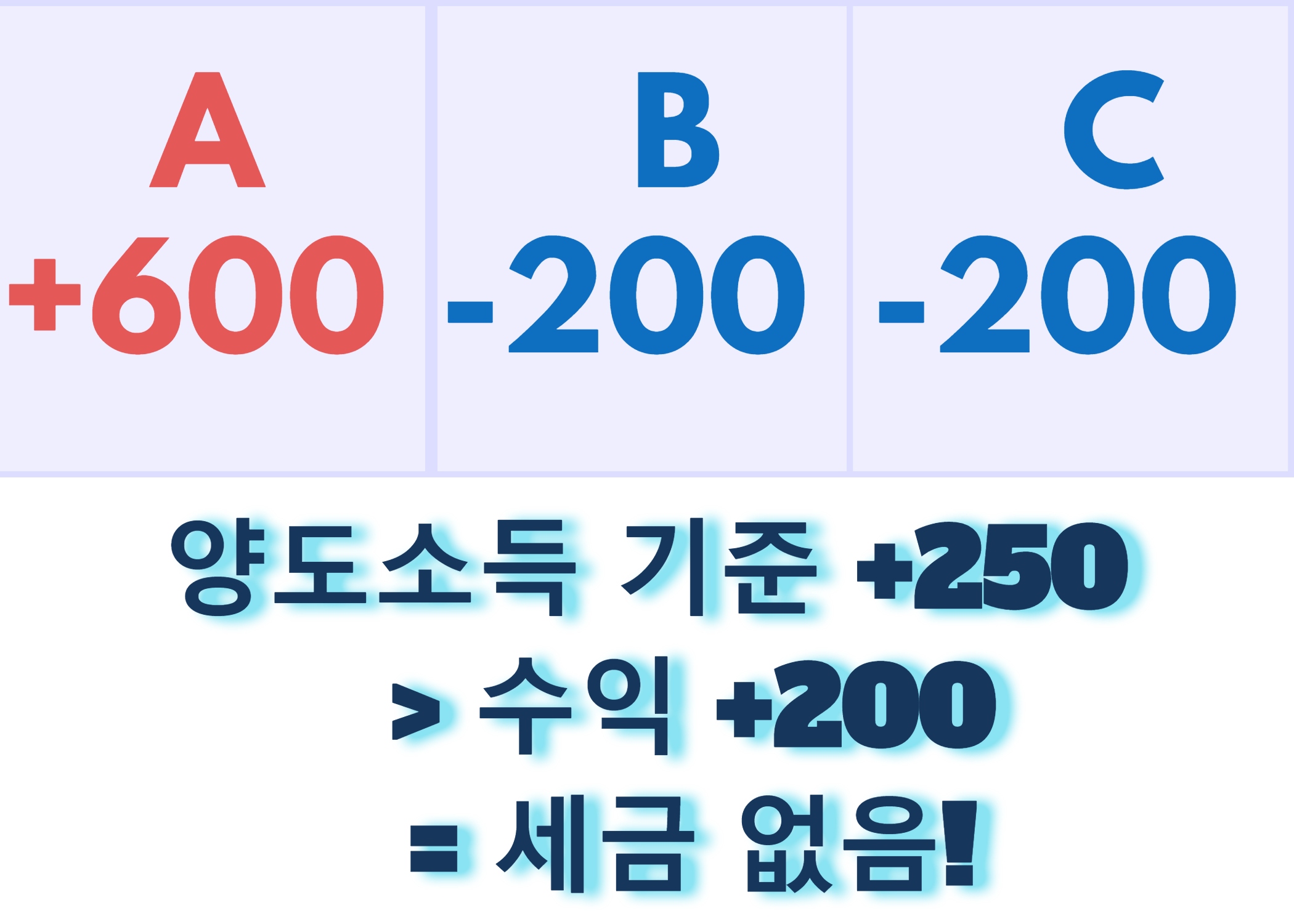 예를 들면 A 종목 +600, B 종목 -200, C 종목 -200일 경우 A,B,C 세 종목을 연말에 모두 팔고 다시 사면 수익은 200만원 이므로 양도소득세 수익 기준 250만원을 넘지 않아 세금이 없습니다.