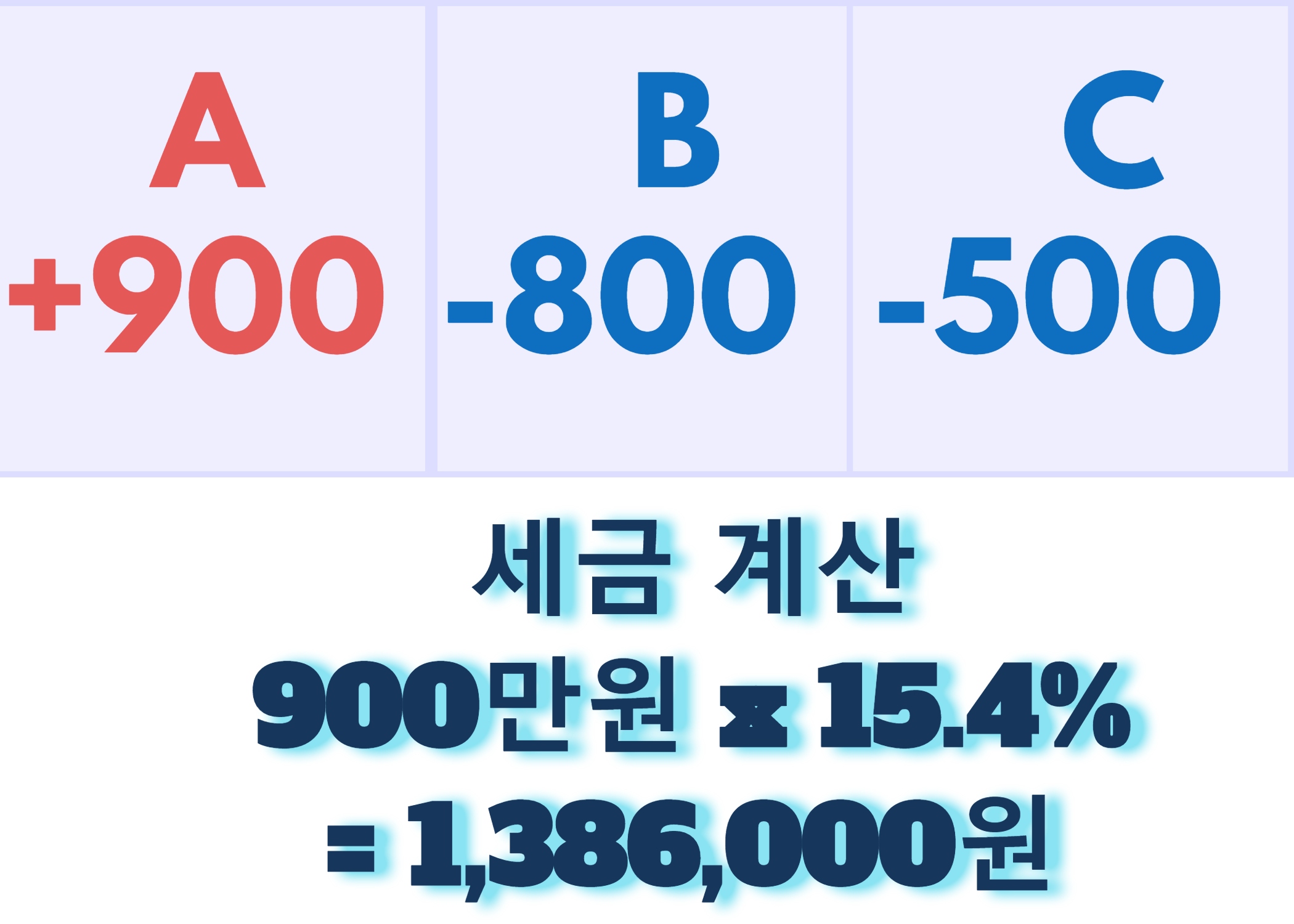 예를 들어봅니다. 국내상장 ETF는 손실과 이익을 합산하여 계산하는 방식을 적용할 수 없으므로 손실이 난 B와 C의 종목은 고려하지 않고 A 종목에 대해서만 15.4%를 세금으로 징수하게 됩니다.