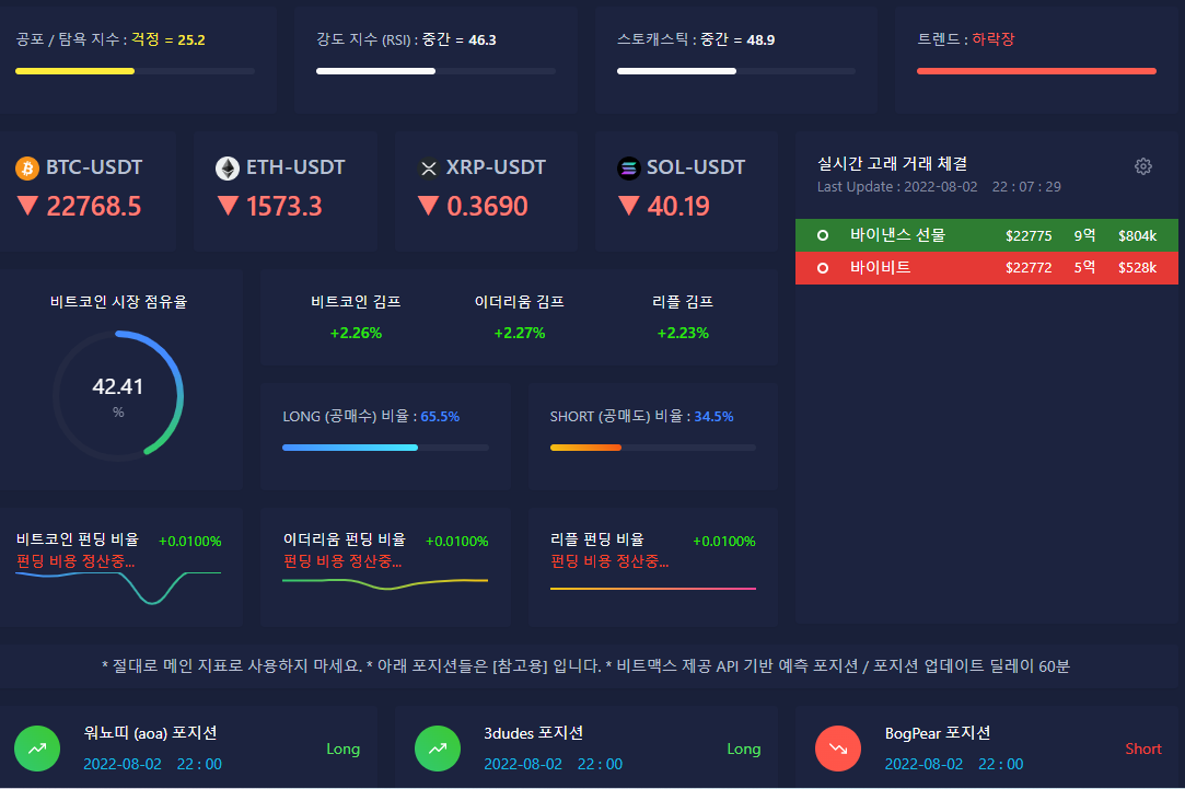 주의사항 : 위 사진에도 나와 있지만 절대로 위 트레이더 포지션을 맹신해서 따라가면 안됩니다. 이는 비트맥스가 제공하는 API를 바탕으로 예측 포지션을 표시해주는 것일 뿐 절대적인 지표는 아닙니다. 그리고 60분 정도의 포지션 딜레이가 있으니 참고하시기 바랍니다.