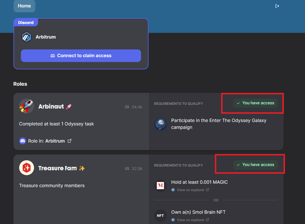 이런 식으로 미션을 전부 수행하시고, 디스코드에 들어가서 자기 아이디를 클릭해보면 role이 부여된 것을 확인할 수 있습니다.