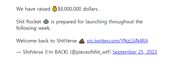 SHIT 코인이 새로운 NFT 도입을 통해 생태계를 확장하고 다른 NFT 프로젝트와 협력을 위해 800만 달러를 모금했다는 소식을 전했습니다.