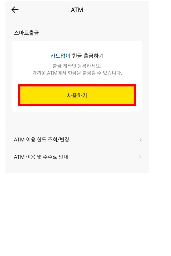 가장 먼저 본인의 카카오뱅크 앱에서 ATM 스마트출금 등록을 해야합니다.
