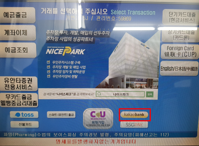 1) ATM 기기를 찾았다면 화면에서 "카카오뱅크" 버튼을 클릭합니다.
