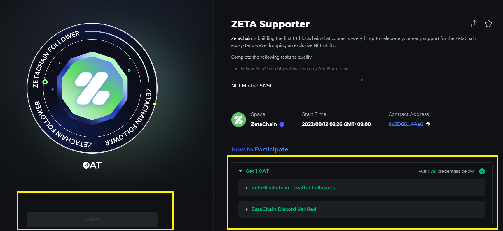 마지막으로 디스코드 연결까지 다하면 이제 ZETA 서포터 NFT를 받을 자격이 주어집니다.