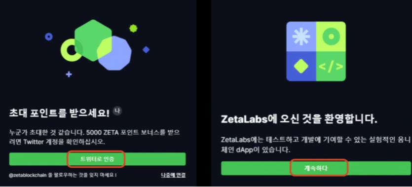 이제 테스트하러 제타체인으로 이동합니다.