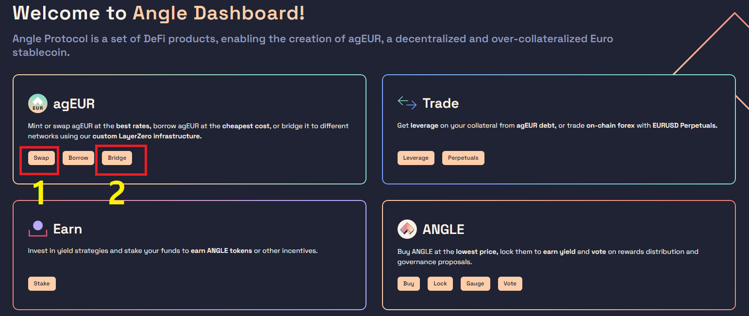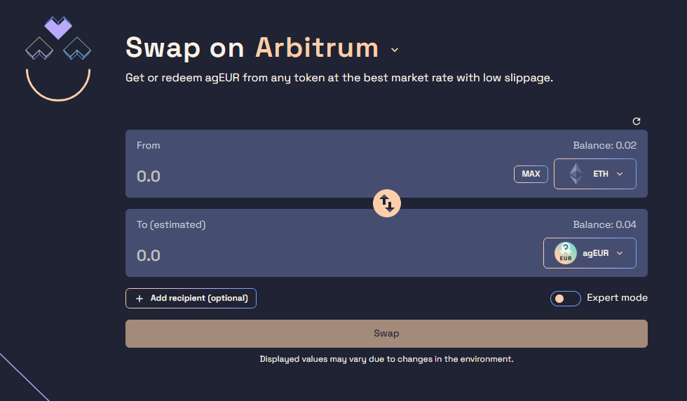 저희가 할 것은 1) agEUR을 스왑하고 2) 브릿지를 통해 다른 체인으로 전송하는 작업입니다.