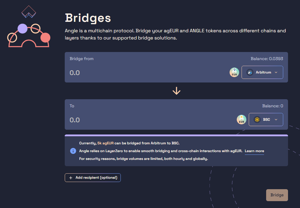그래서 레이어제로를 활용해서 크로스체인 브릿지를 지원하는 angle.money를 이용해서 기록을 남겨보겠습니다.