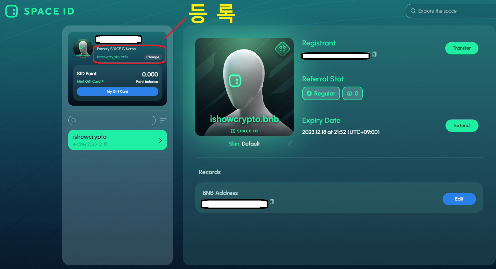 여기까지 하면 .bnb 도메인 구매 및 향후 토큰 발행 시 에어드랍 준비까지 완료했습니다.