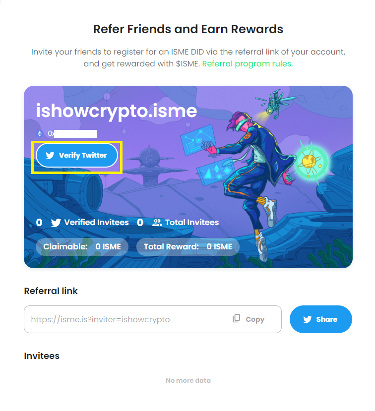 도메인 등록을 완료 시 100ISME 를 받을 수 있고, 추천인을 통해 친구를 초대하면 50ISME를 추가로 받을 수 있습니다.