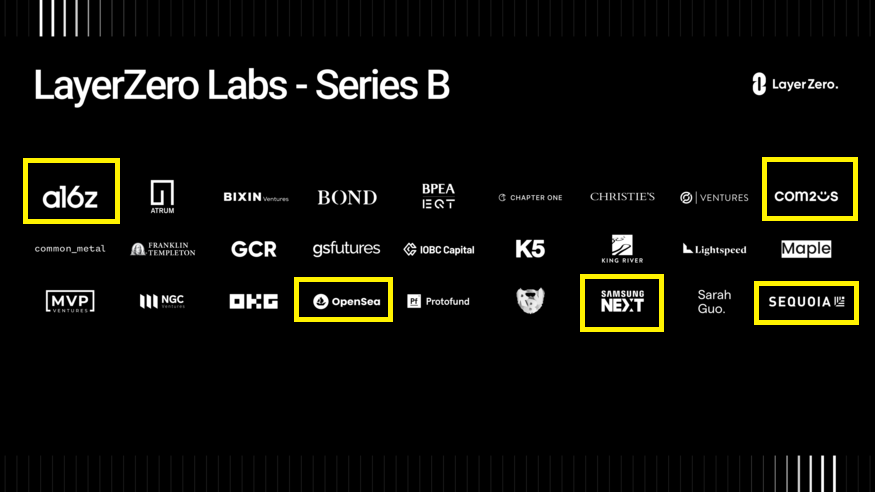 레이어제로는 시드라운드, 시리즈 A 및 B 라운드에서 a16z, sequoia, 바이낸스랩스 등으로부터 총 293.3백만달러 투자를 유치했습니다.