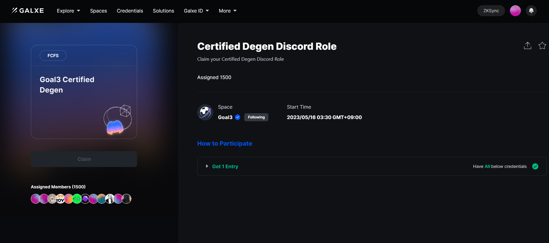 여기까지 하면 Goal3 디스코드에서 Degen role을 획득한 것을 확인할 수 있을 겁니다.
