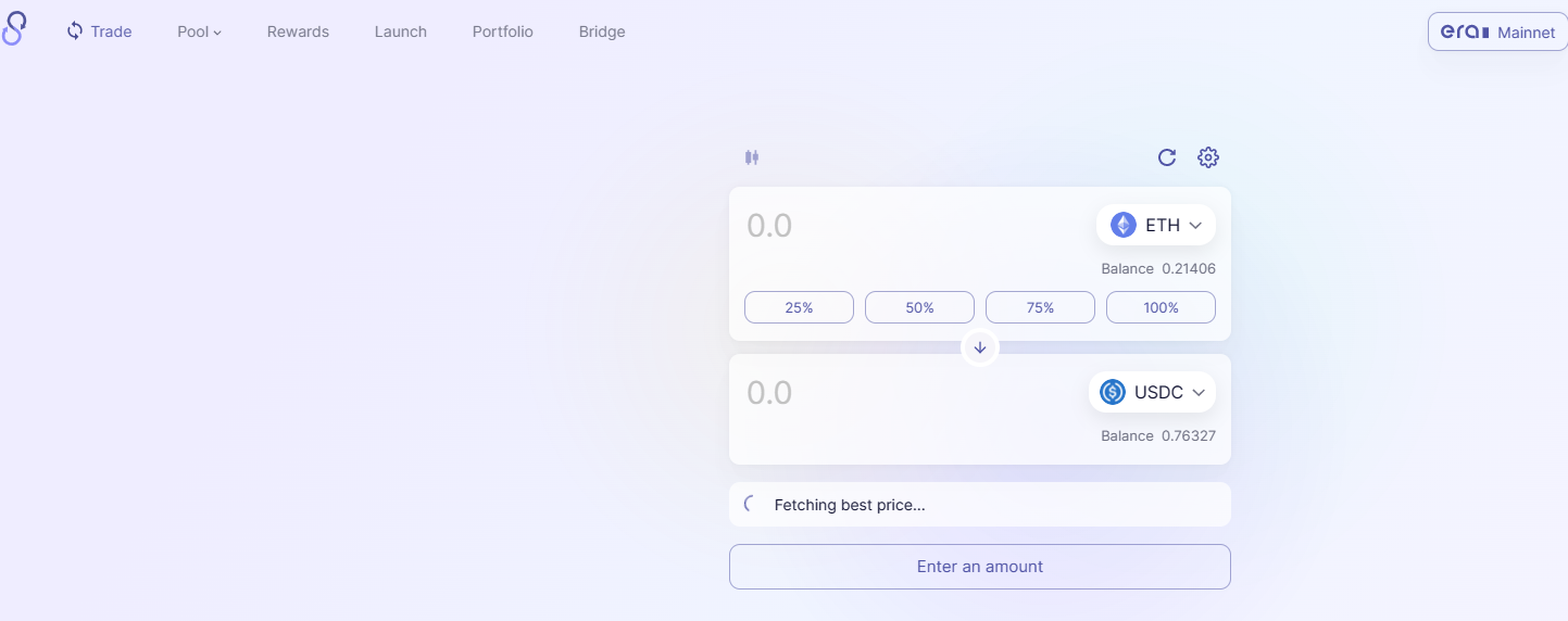 zksync era 메인넷에 eth가 들어왔으면 zksync era의 대표적인 dex인 syncswap.xyz 로 이동해서 eth를 USDC로 스왑해줍니다. 이 때 스왑은 최소 10USDC 이상 해줍니다. (이유는 뒤에서 설명)