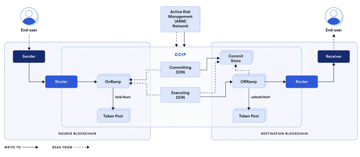 체인링크 CCIP를 사용하면 단일 중개자에 의존하는 대신 분산형 체인링크 노드 네트워크를 통해 자금이 이체됩니다. 즉, 한 노드가 악의적으로 행동하면 다른 노드는 견제와 균형 시스템 역할을하여 소수에 의해 자금이 탈취되는 것을 방지합니다.
