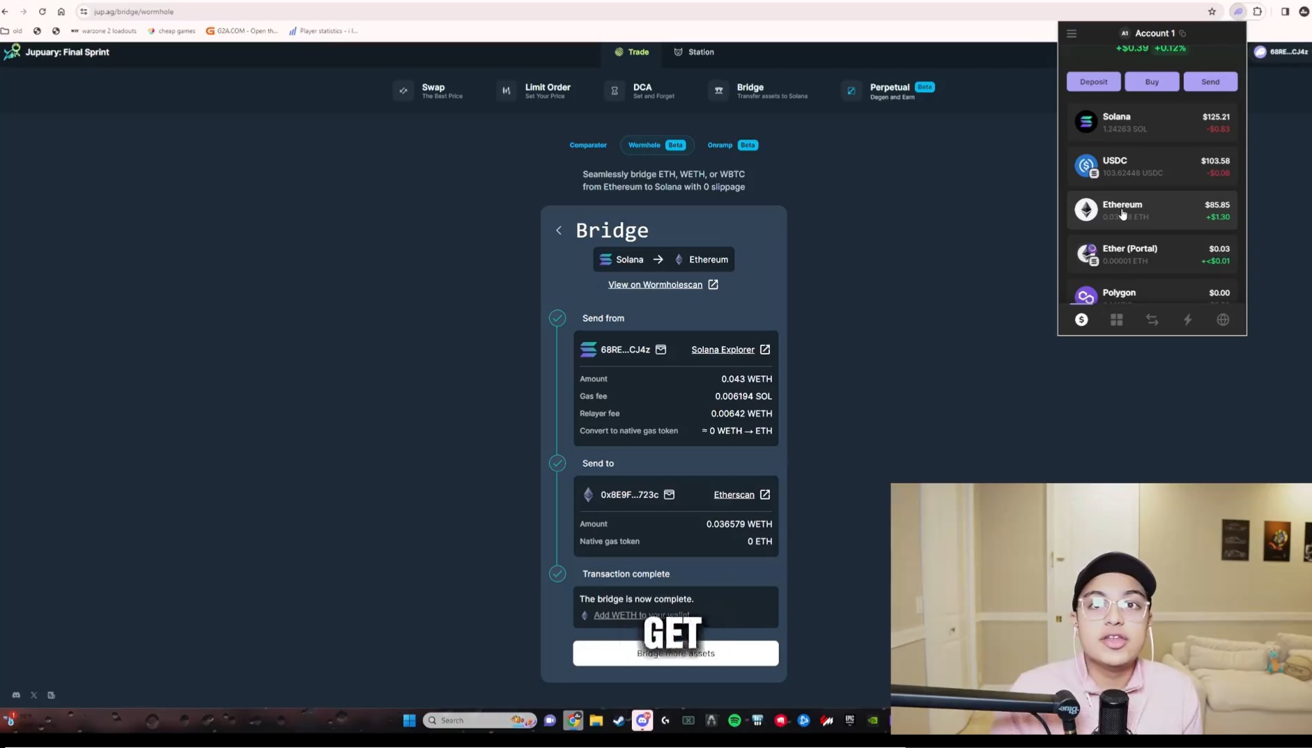 또한 브리지 기능을 활용하여 SOL을 이더리움으로 전환했으며, 이 단계는 전략에 중요하다고 설명했습니다. 그의 전략에서 가장 복잡한 부분은 선물 거래로, 그는 신중하게 사용하라고 조언했습니다. 그는 "선물 거래는 복잡하고 위험합니다. 당신이 거래에 경험이 있는 경우에만 추천합니다." 라고 경고했습니다.