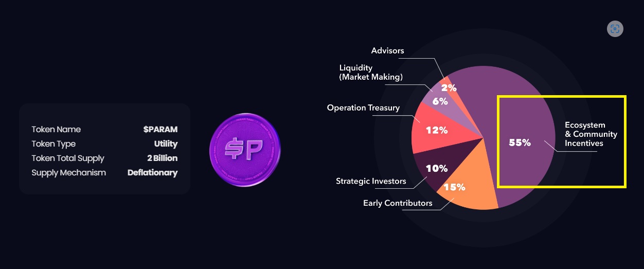 파람랩스 토크노믹스를 보면 생태계와 커뮤니티 인센티브에 55% 토큰 배분을 확인할 수 있습니다.