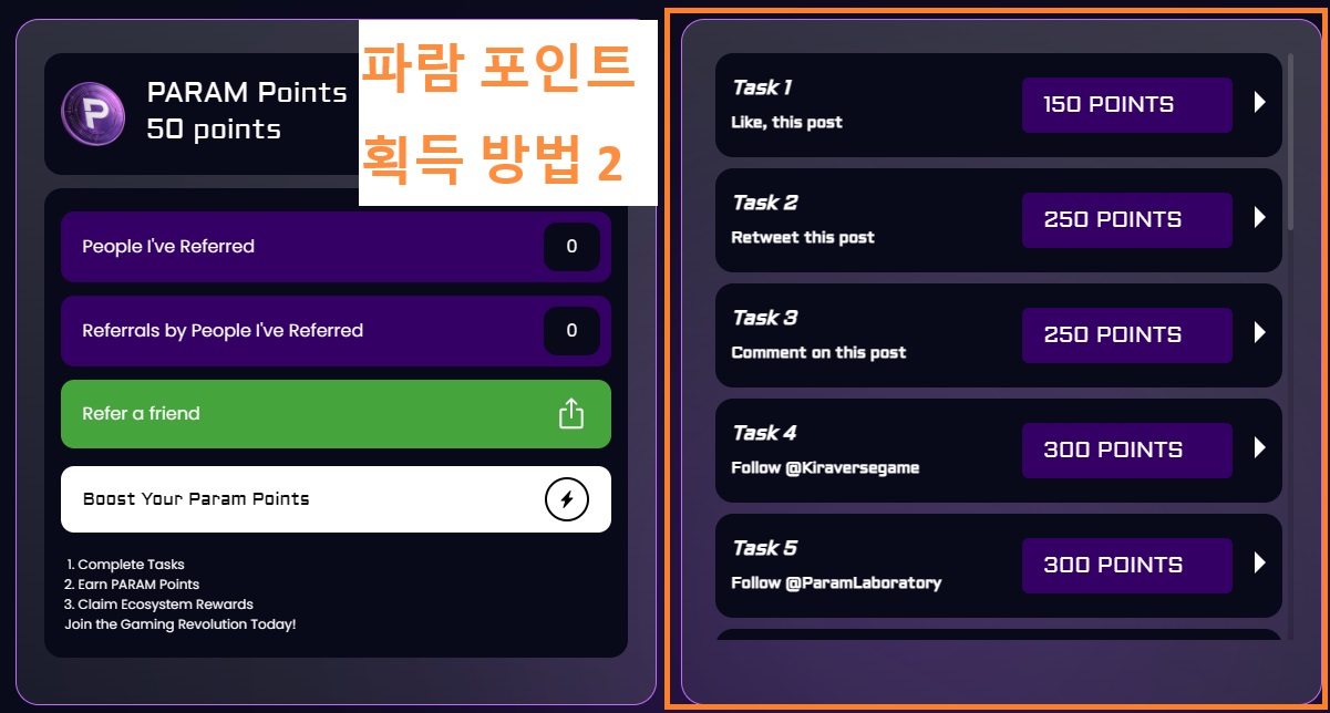 이렇게 해서 획득된 포인트는 향후 PARAM 토큰으로 분배될 예정입니다.