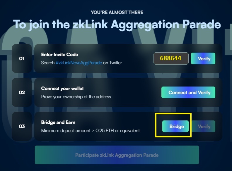 그럼 위와 같이 zkLINK 이벤트 참여 버튼이 활성화됩니다. 클릭해서 참여합니다.