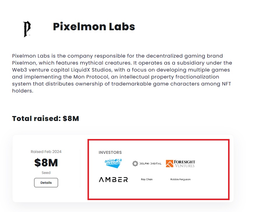 픽셀몬은 크립토 게임업계 리더인 애니모카브랜드, 대형VC인 델파이 디지털로부터 투자를 유치했습니다.
