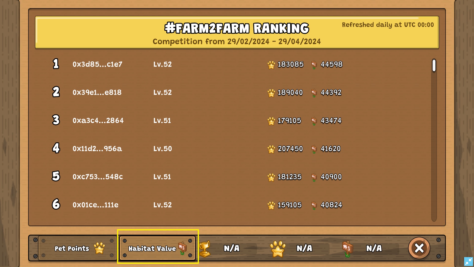 시즌이 끝날 때 서식지 가치는 #farm2farm 보상 랭킹에 따라 MON토큰으로 보상합니다.