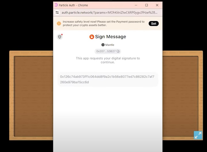 그럼 particle wallet이 자동으로 생성되며, sign message에 confirm 해줍니다.