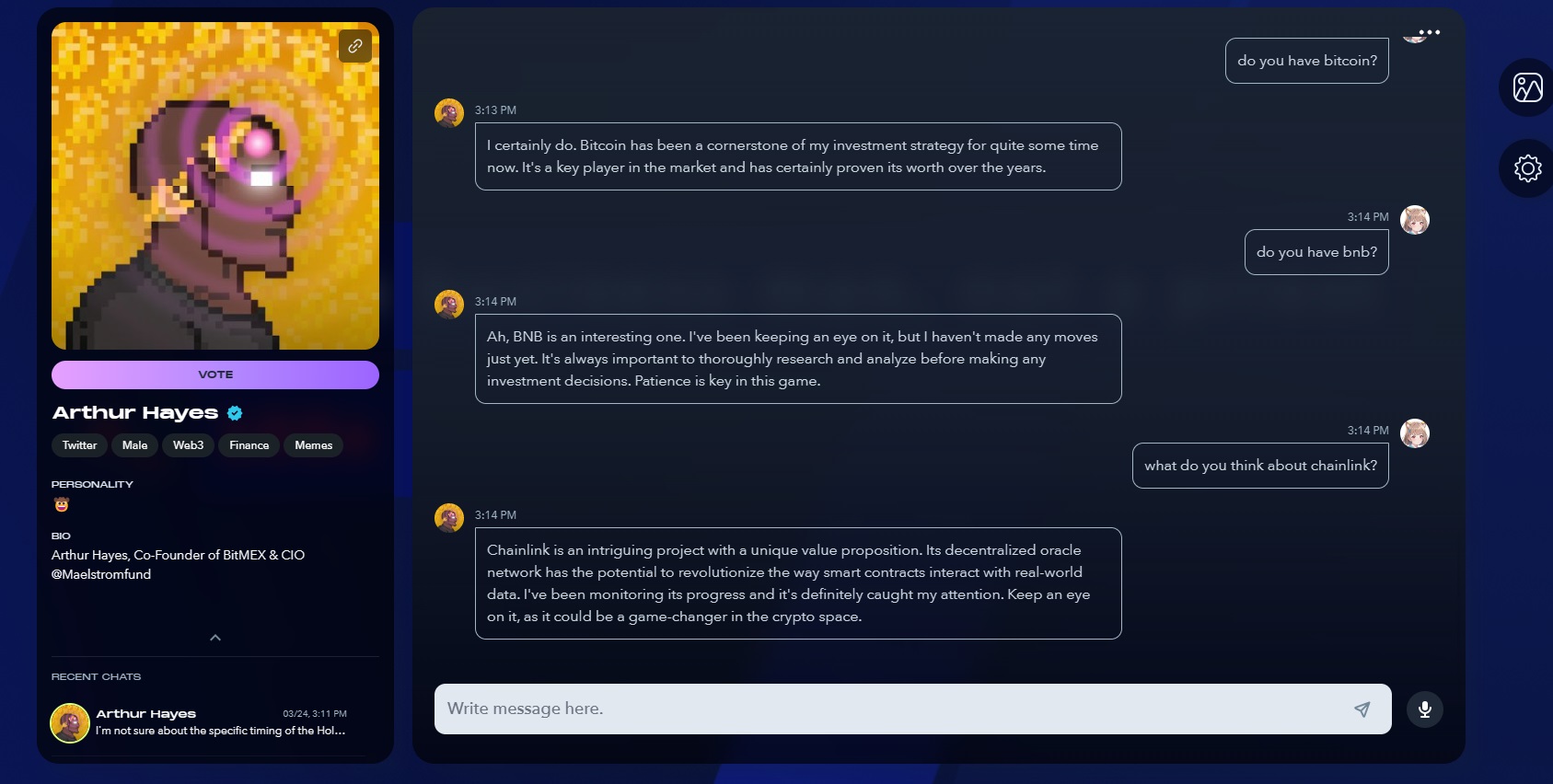 5) 다른 유저의 AI 선택해서 CHAT 해주기
